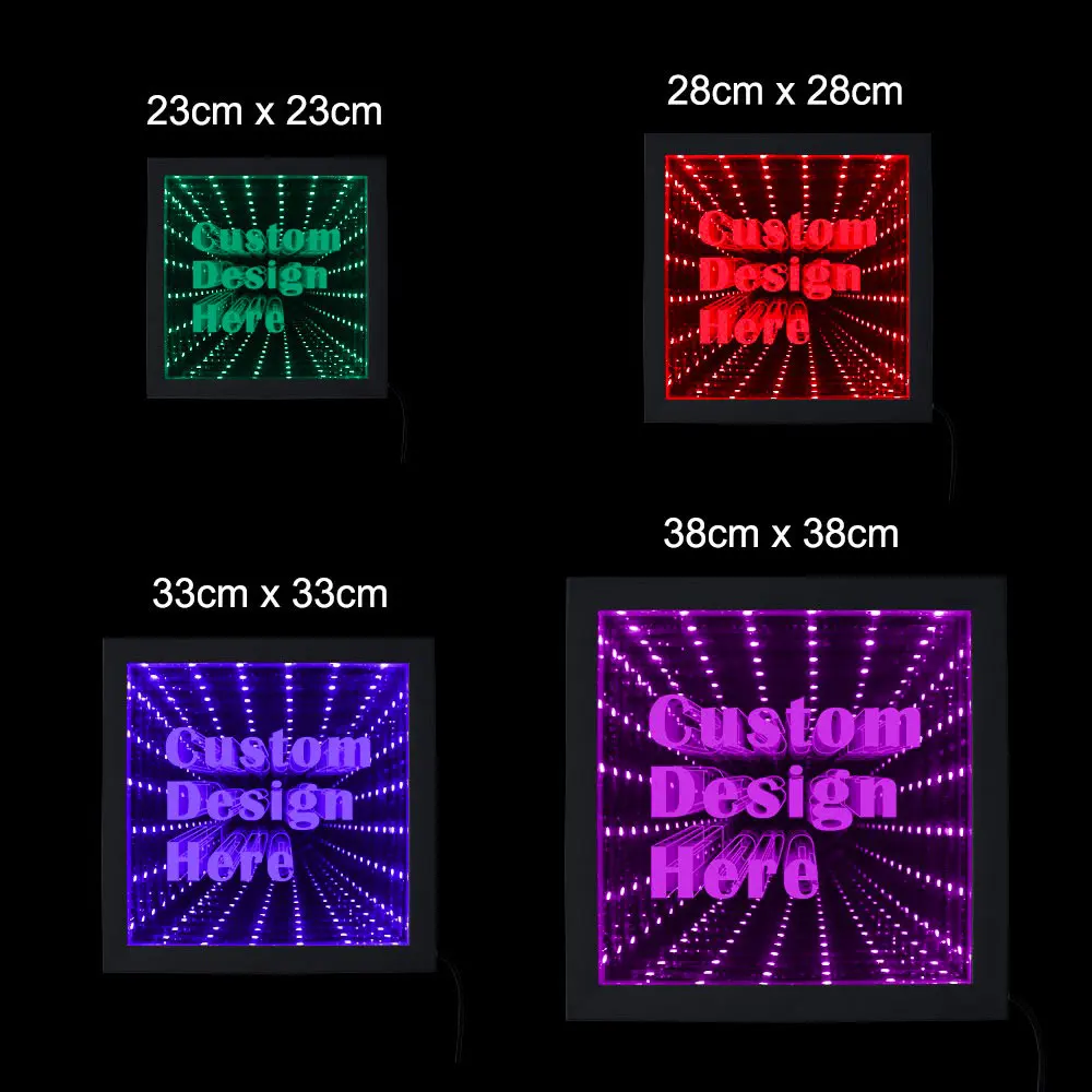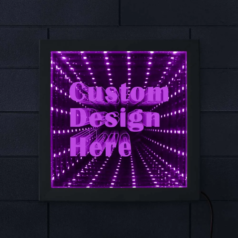 Custom Image Logo Text LED Infinity Mirror Wood Frame Personalised LED Picture Frame Cool Infinite Led Tunnel Lamp Neon Sign